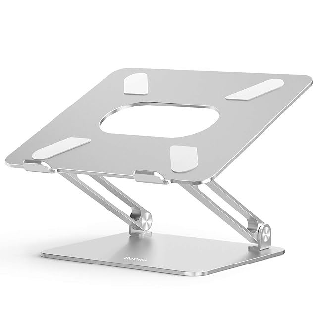 BoYata ノートパソコンスタンド pc スタンド タブレット 無段階高さ/角度調整可能 姿勢改善 腰痛/猫背解消 安定性 折りたたみ式 アルミ合金製 17インチ以下のデバイスに対応 シルバー | Trend Design BASE店