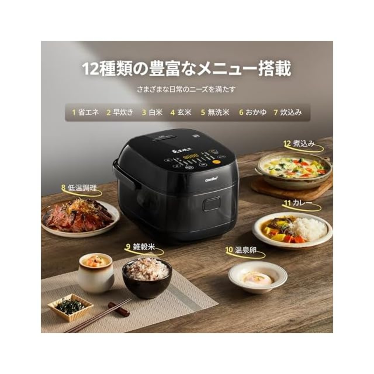 商品名:COMFEE' 炊飯器 5.5合炊き IH式 一人暮らし 2人暮らし 炊飯ジャー 1~6人用 12種類の調理メニュー付き 炎旨炊き 早炊き 最短25分炊飯 低温調理 玄米 雑穀米 保温12時間 予約機能 コンパクト ブラック