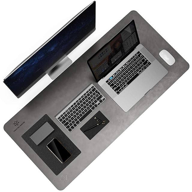 YSAGi デスクマット レザーデスクパッド 大型マウスパッド 両面レザー 超防滑設計 防水 防油 断熱 お手入れ簡単 オフィス 自宅用 装飾用 大型デスクパッド (グレー, 90*43cm) | Trend Design BASE店