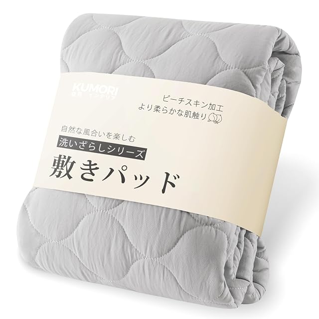 クモリ(Kumori) 柔らかい 敷きパッド セミダブル 洗いざらし ベッドパッド 耐久性が高い 洗える 吸湿速乾 抗菌 防臭 防ダニ TEIJIN中綿 オールシーズン ベッドシーツ ピーチスキン シワ加工 素肌にやさしい マットレスパッド 着脱楽々 ベッドマット 120X200cm ライトグレー | Trend Design BASE店