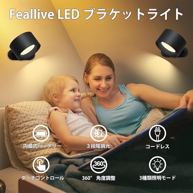 商品名:Feallive LED ブラケットライト スポット3段階調光調色 360°照明角度調整 コードレス 工事不要 ウォール 玄関 壁取付 間接照明 玄関ナイト デスク 高輝度 省エネ 壁掛けランプ ウォールランプ ベッドサイドランプ 卓上 壁掛けライト 日本語取扱説明書付き…