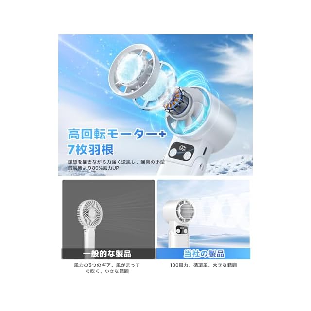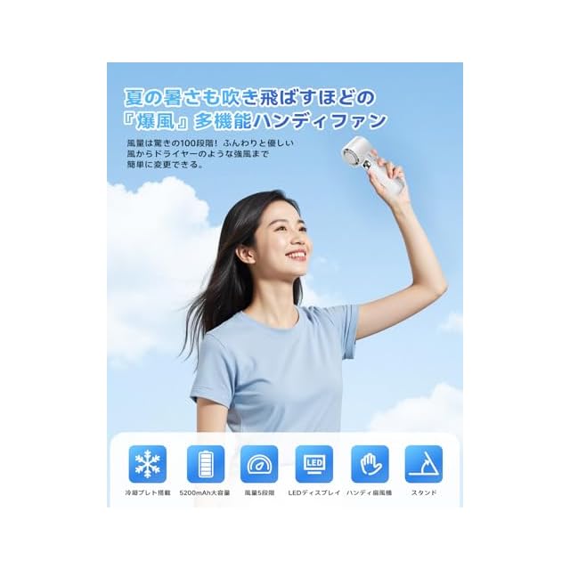 商品名:2025新登場新登場 瞬間冷却 携帯扇風機 手持ち扇風機 5200mAh大容量バッテリー 冷却プレート付き -20℃体感 折り畳み式 Type-C急速充電 超軽量 7枚羽根 コンパクト 静音設計 5段階風量調節 LEDディスプレイ スポーツ観戦/花火大会/オフィス/アウトドアなどに適用