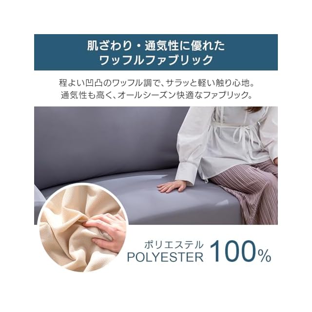 アイリスプラザ ソファカバー 2人掛け かけるだけの簡単ソファカバー 伸縮素材伸 自宅で丸洗いOK 抗菌防臭 程よい凹凸のワッフル調 サラッと軽い触り心地 通気性バッチリ オールシーズン使用OK アイボリー(IV) NSFC-20 | Trend Design BASE店