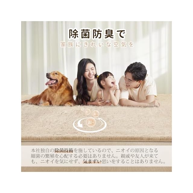 【抗菌防臭ラグ】本社が独自に開発した抗菌技術が施されており、細菌や真菌の成長を抑制し、ラグを長期間清潔で衛生的に保つことができます。ラグの清掃の手間を減らすだけでなく、ご家族や友人を常に清潔で安全な環境に保つことができます。