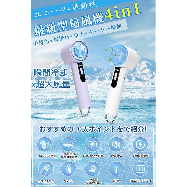 商品名:ハンディファン【2025年モデル・瞬間冷却】携帯扇風機 冷却プレート 超高速大風量 5200mAh大容量 折り畳み 手持ち扇風機 小型 100段階風力調節 接触冷感 ミニファン 超軽量 静音 ハンディ扇風機 USB充電式 暑さ対策 4in1 手持ち 卓上 首掛け クーラー機能 ストラップ付き カラビナ付き (ホワイト)