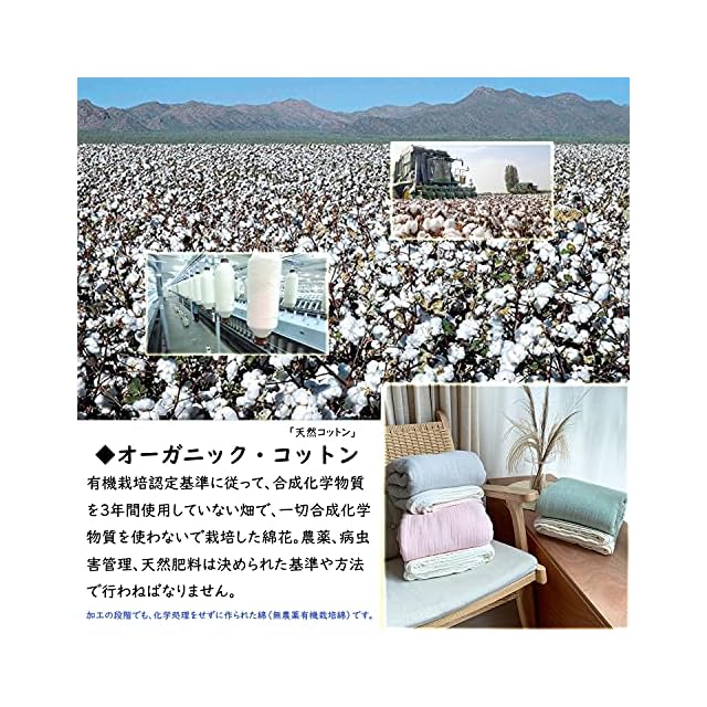 【安心なガーゼケット】天然素材を使うことはもちろん、縫い糸も全て無蛍光にこだわっているので、赤ちゃんがいるご家庭でも安心して使うことができます。寝苦しい夏の夜や肌寒くなってきた秋でも一年中、快適な眠りを体感できます。