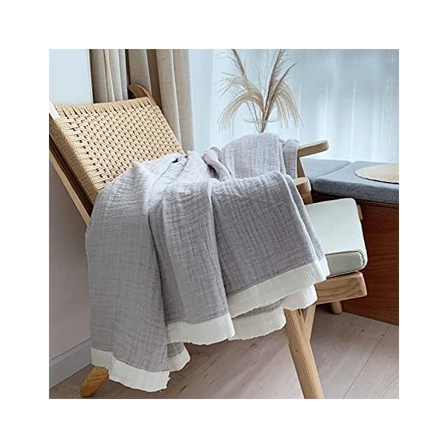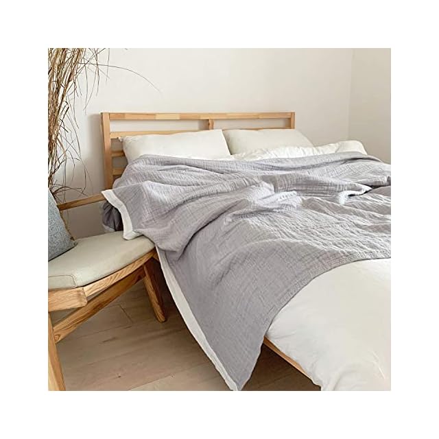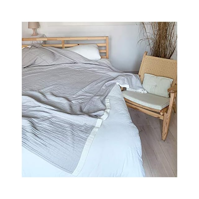 商品名:Vanxing ガーゼケット シングル 4重織り 天然綿100% 吸湿 通気 夏快眠 肌に優しい 年中快適 丸洗いOK 軽量 リバーシブル 150x200cm (無地,グレー)
