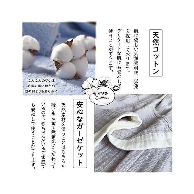 【天然コットン100%】Vanxingのガーゼケットは、綿花にとことんこだわっています。肌に優しい天然素材綿100%を採用しております。デリケートな肌にも安心して使うことができます。静電気も大変起きづらいのも人気です。