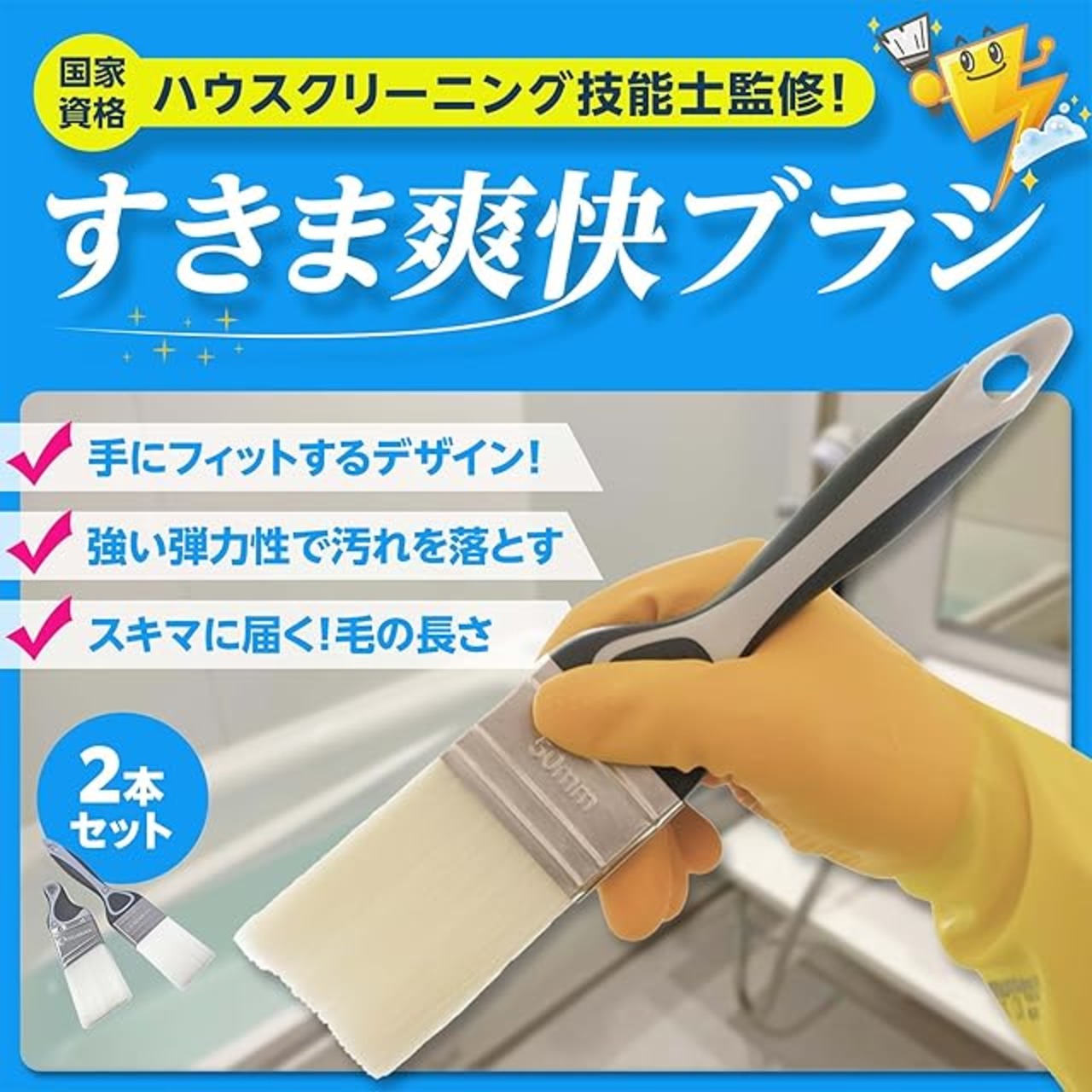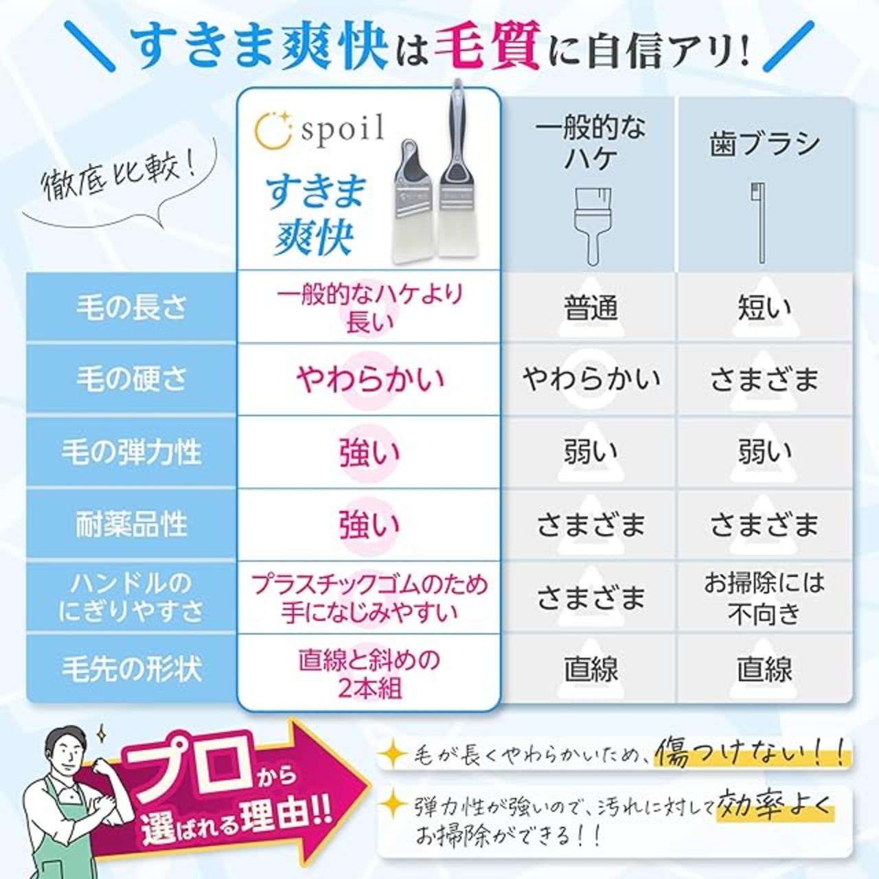 spoil すきま爽快 お風呂掃除 ブラシ【ハウスクリーニング技能士監修】 国家資格 (2本セット) 蓋 バス 用品 浴室 浴槽 グッズ 道具 溝 汎用 埃取り