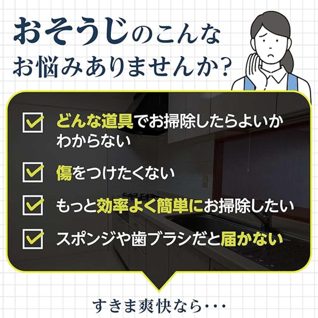 水だけで汚れが落ちるお風呂掃除ブラシ。プロの技を取り入れた特殊素材を使用したブラシ。手間をかけずに清潔なお風呂を実現します。これらのアイテムはお掃除のプロが監修したもので、効果的で使いやすいデザインとなっています。毎回のお風呂掃除がより効果的で楽しくなります。