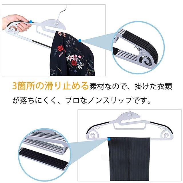 【高品質耐久性持ちハンガー 】高品質合金鋼+ABS素材を採用して、ハンガーは長い寿命を持ちます。柔軟性が強く、力を入れて、曲げても折れにくいです。スリムタイプ、軽量、耐久性にも優れています。どんな家庭でも重宝されることに間違いないです。
