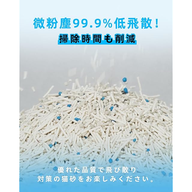 【ニオイを制限×粉塵散りにくい】本社の研究室により、SAT消臭粒子がニオイを厳密に吸着します、吸水力UPの多層構造が臭いを閉じ込め、抗菌成分が48時間持続効果を発揮できます。独自配合の豆腐/おから&ベントナイトが密着固化し、粉塵飛散ほぼゼロで砂の飛散を効果に防止することができます。