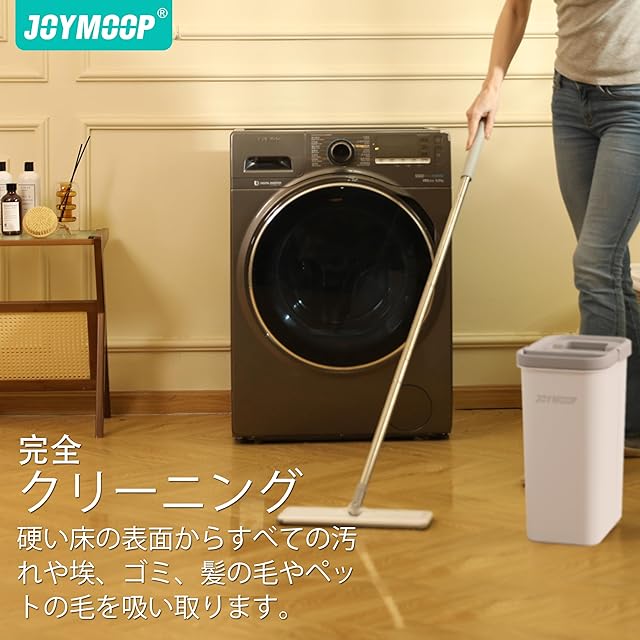 JOYMOOP モップとバケツ 絞り器セット ハンズフリー フラットフロアモップとバケツ 洗えるマイクロファイバーパッド3枚付き 拭き掃除対応の床掃除システム フローリング 乾湿両用 | Trend Design BASE店