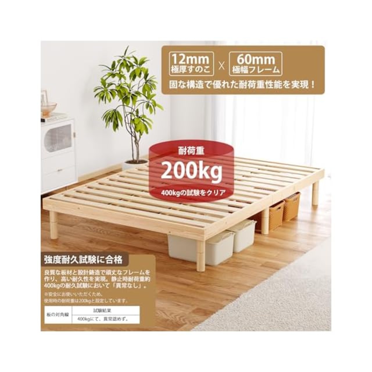 [SuperKois] ベッド ベッドフレーム シングル すのこベッド シングルベッド ベット 天然無垢パイン 3段階高さ調節 頑丈 耐荷重200kg 静音 天然木 湿気対策 ローベッド ナチュラル | Trend Design BASE店