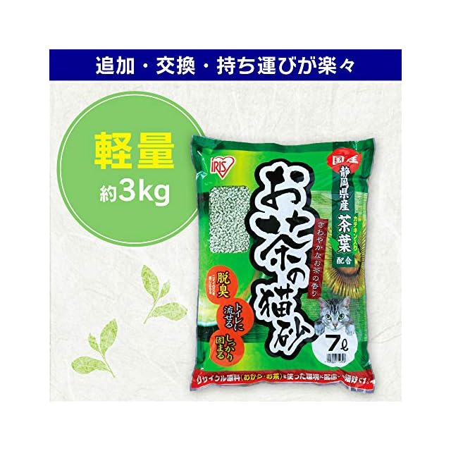 商品名:アイリスオーヤマ トイレに流せる お茶の猫砂 脱臭 7Lx6袋 (まとめ買い)