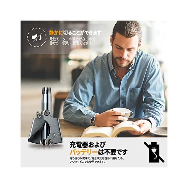 手動の鼻毛トリマーはバッテリーなしで動作します。 60年の金属製品製造の歴史を持つ会社によって韓国で製造されました。