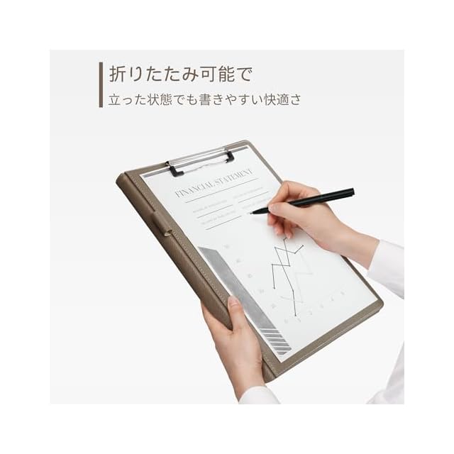バインダーA4 クリップボードフォルダ 二つ折りPU 会議パッドクリップファイル デスクパッド署名フォルダ A4書類フォルダー 契約書サイン専用 オフィス用品 事務用品 (灰褐色) | Trend Design BASE店