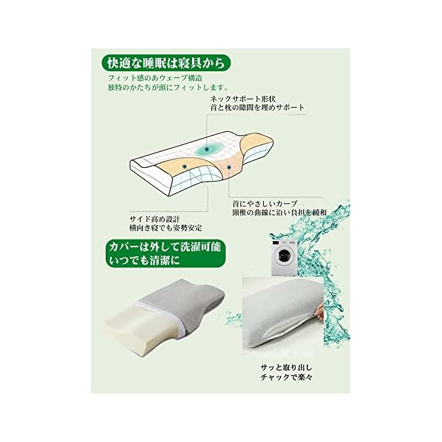 【材質】優れた高品質メモリーフォムを採用し、入眠時に肩、首、頭部に受ける圧力をバランス分散し、最適な寝心地のよさを提供し、リラックス効果が得られます