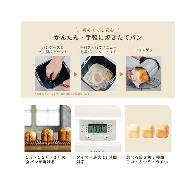 1斤、1.5斤、2斤の食パンが焼ける