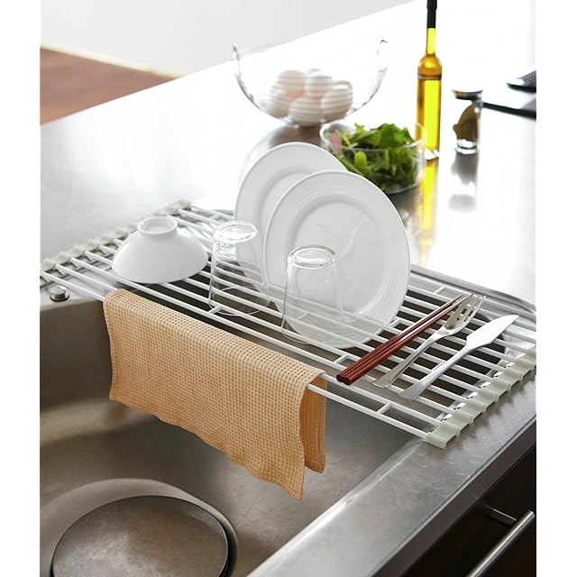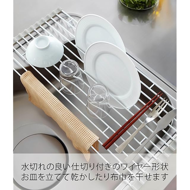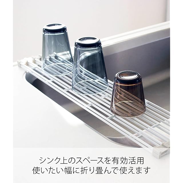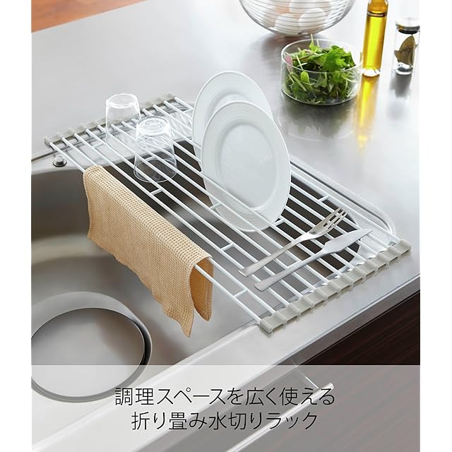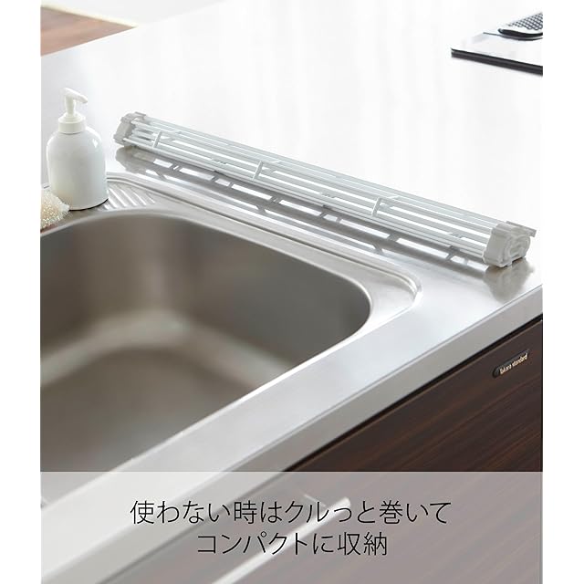 商品名:山崎実業(Yamazaki) 折り畳み水切り L ホワイト 約W26×D58×H0.8cm プレート Plate キッチン 丸めてスリムに収納 7846