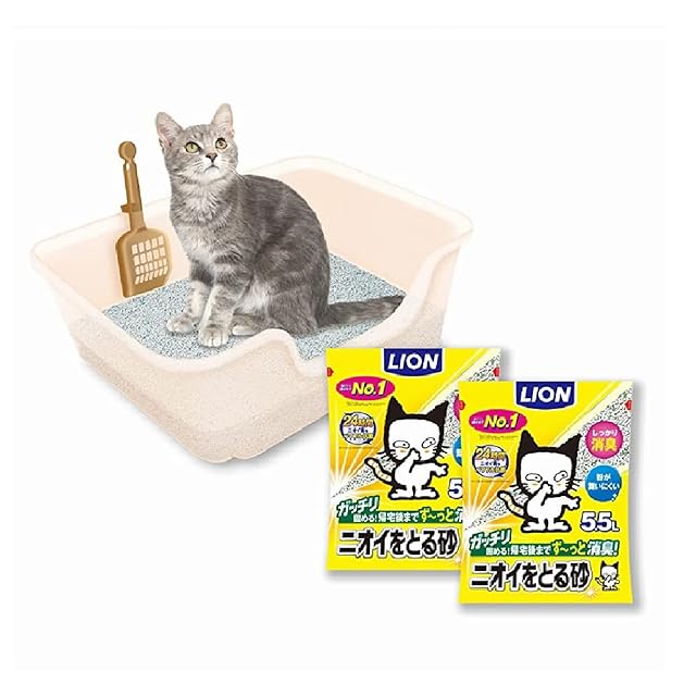 ライオン 猫トイレ ニオイをとる砂 獣医師開猫トイレ + ニオイをとる砂 無香料 5.5L×2袋セット 消臭力が高い鉱物系 子猫から 成猫 シニア猫 大型猫まで 小さめ、大きめサイズにも LION PET | Trend Design BASE店