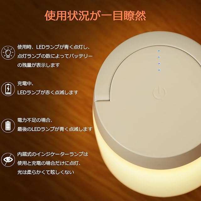 【安全使用】ルームライトには収納できるハンドルを特別に設計しました。 必要なときはハンドルを立てて、ランプを持ち運んだり、ドアノブやベッドなどに掛けたりできます。不要なときはハンドルを下ろすと、テーブルランプの上部がフラットになります、操作に邪魔しません。底面には滑り止めのシリコンが付いており、テーブルランプの安定性を確保します。12ヶ月のメーカーが付いております。何か不備な点がある場合は、ご遠慮無くお問い合わせください。迅速に対応させていただきます。