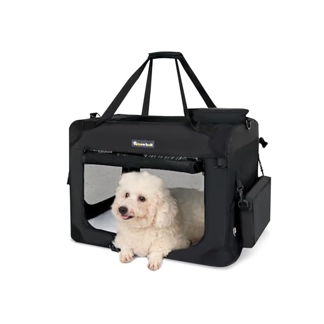 Totoro ball 犬用キャリーバッグ ソフトクレート 犬 キャリーケース 中型犬 犬用クレート 折りたたみ 犬 車用ケージ 5面メッシュ ロック付き 給水ボトルバンド付き 中小型犬・猫2匹 10kgまで『車載、旅行、避難、アウトドア、帰省で活用!』 (ブラック, M(60L x 40W x 40H cm)) | Trend Design BASE店
