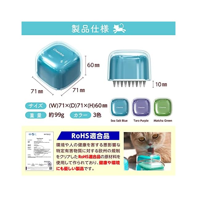 【RoHS適合品】環境や人の健康を害する悪影響な特定有害物質に対する欧州の規制をクリアしたRoHS適合品の原材料を使用して作られており、猫ちゃんの健康に優しい製品です。