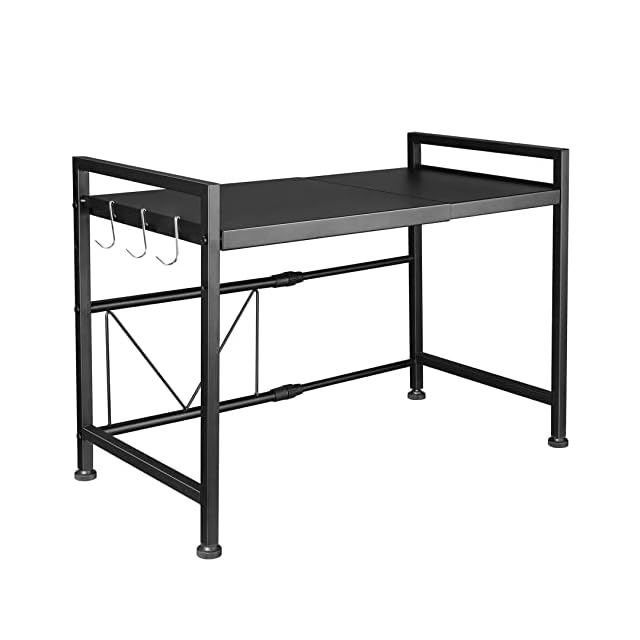 GAWOOW レンジ上ラック レンジラック 伸縮式 棚板高さ調節可 (ブラックA, 高さ: 44.5cm)