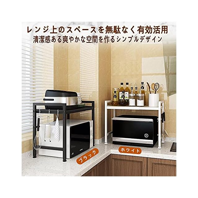 商品名:GAWOOW レンジ上ラック レンジラック 伸縮式 棚板高さ調節可 (ブラックA, 高さ: 44.5cm)