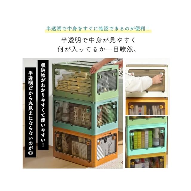 【どこからでも開閉可能&見やすい】縦横どちらの向きに設置しても、積み重ねても出し入れしやすい上下左右5面開閉。半透明で中身が見やすく何が入っているかも一目瞭然〇。蓋とサイドノ扉にロックがついてるのでしっかりと閉じることが可能。