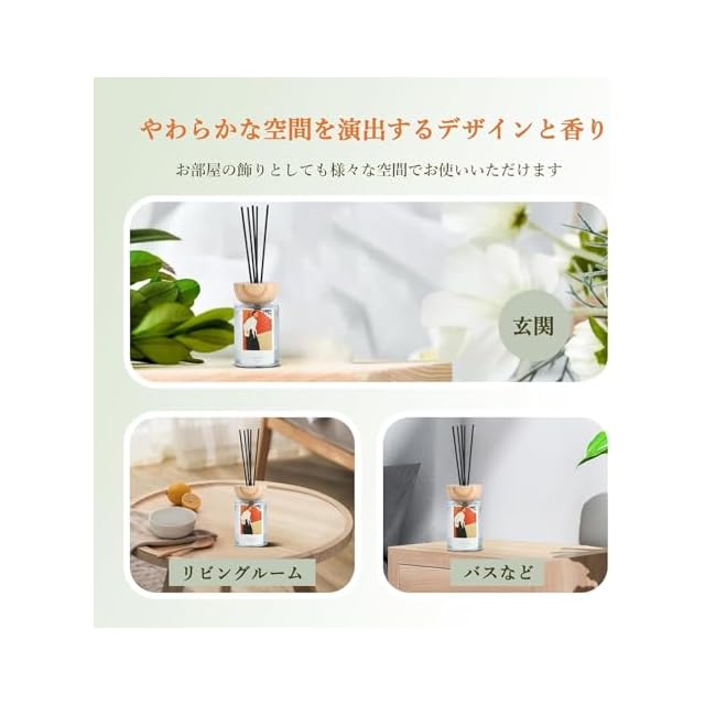 【気分も体もリラックス】部屋にお気に入りの心地よい香りを加えて、さらに快適な空間作りを目指してみます。お部屋のインテリアとしても活躍してくれるリードディフューザー。また、慌ただしい生活の合間に、人生をより楽しむためのスペースも提供してくれています。家庭用としてのみならず、記念日、母の日、誕生日及び各祝日のお祝い時のプレゼントに最適です。