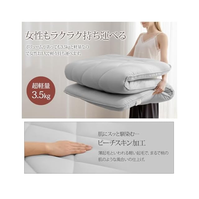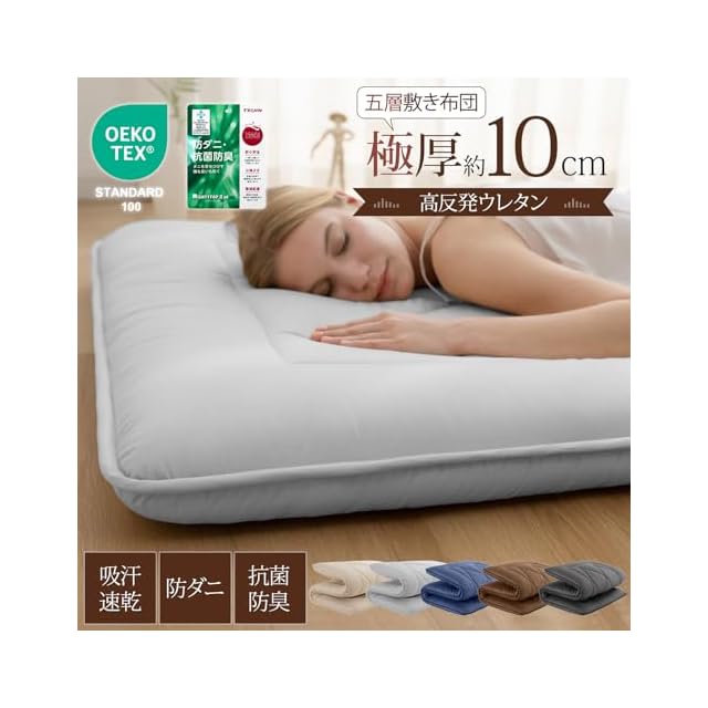 商品名:fuwawa 敷き布団 シングル 敷布団 厚め 10cm ボリューム 軽量 五層構造 三つ折り ピーチスキン 体圧分散 ウレタン入り 高級 折り目なし TEIJIN「マイティトップⅡ」中綿使用 オールシーズン 抗菌防臭 防ダニ 洗える しき布団 マットレス 一人暮らし 来客用布団 厚手 100×210cm グレー