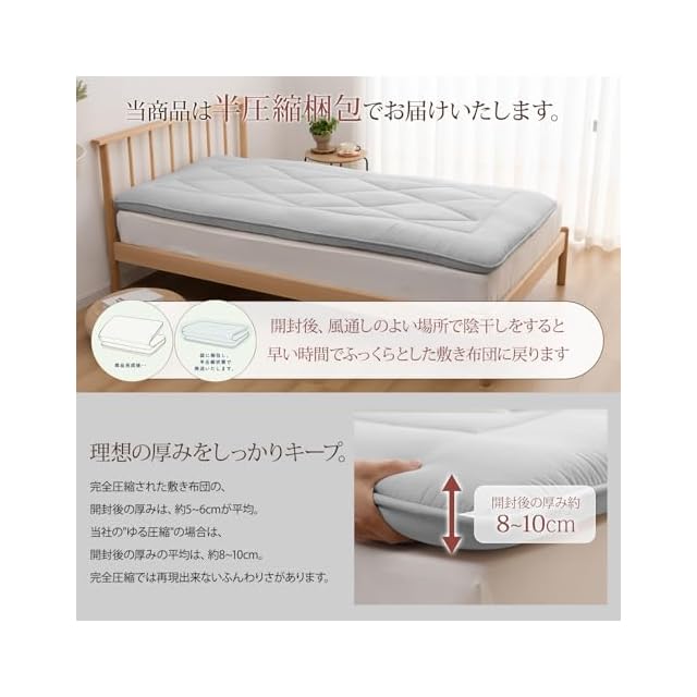 fuwawa 敷き布団 シングル 敷布団 厚め 10cm ボリューム 軽量 五層構造 三つ折り ピーチスキン 体圧分散 ウレタン入り 高級 折り目なし TEIJIN「マイティトップⅡ」中綿使用 オールシーズン 抗菌防臭 防ダニ 洗える しき布団 マットレス 一人暮らし 来客用布団 厚手 100×210cm グレー | Trend Design BASE店