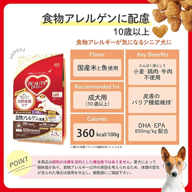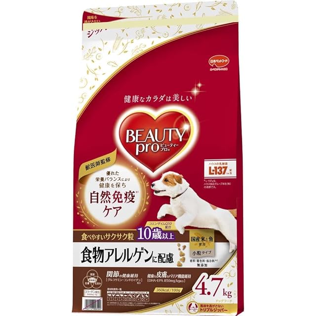 商品名:ビューティープロ ドッグフード 食物アレルゲンに配慮 10歳以上 国産米・魚 4.7kg 【獣医師監修】【国産】【大容量】