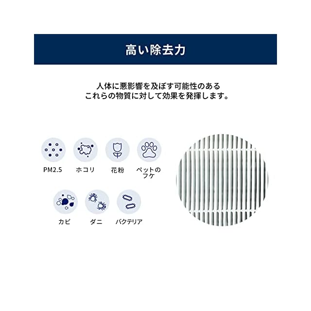 高い除去力:ホコリや花粉など様々な空気中の細かな粒子を除去。