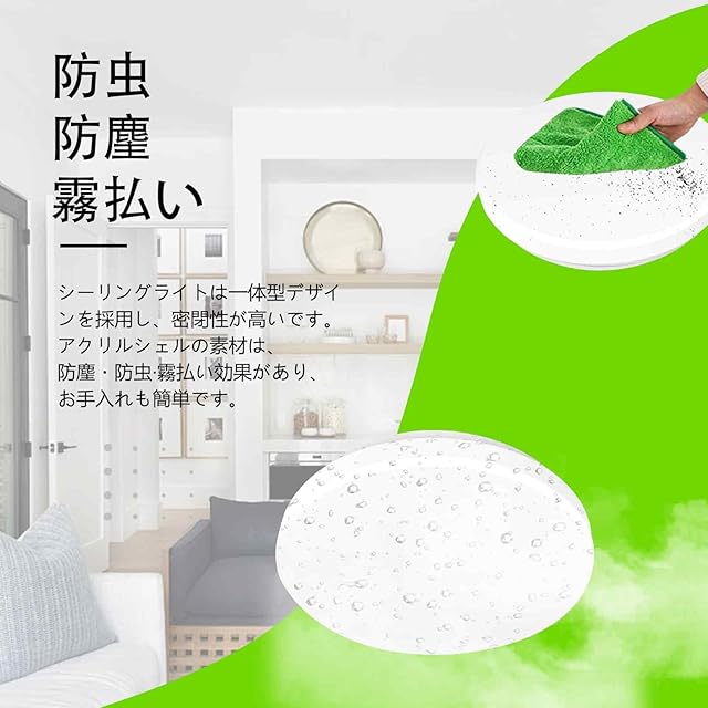 ■【簡単インストール】一体化設計を採用して、インストールプロセスを簡素化しました。複雑な部品の組み立ては不要です。天井のフックに吸頂灯の本体を軽く押し込み、その後で時計回りに回転させるだけで固められます。このプロセスにはどんな道具も配線も不要で、インストール経験のない人でも1分以内で簡単にインストールを完了できます。