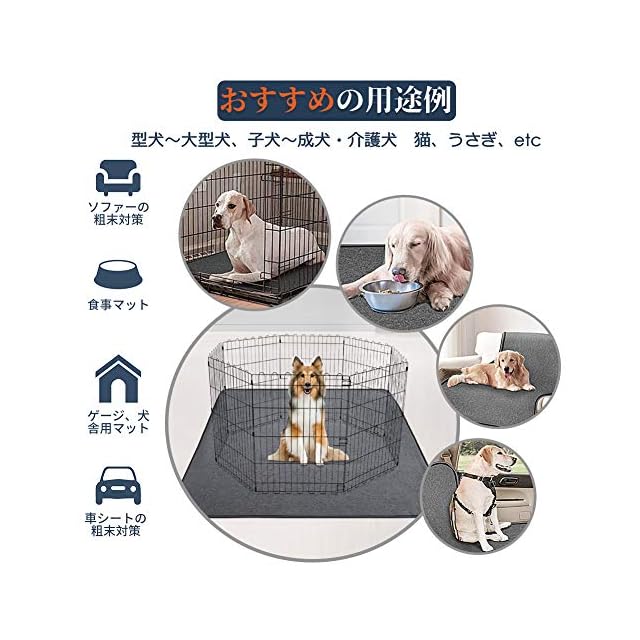 おすすめの用途例:車のシートやソファーの粗末に;老犬の失禁トレーニングパッドとして;ゲガや介護のケアの粗相対策に;ペッパーシーツを食べてしまう子犬のトイレとトレーニングに;子犬や高齢犬のマットとして