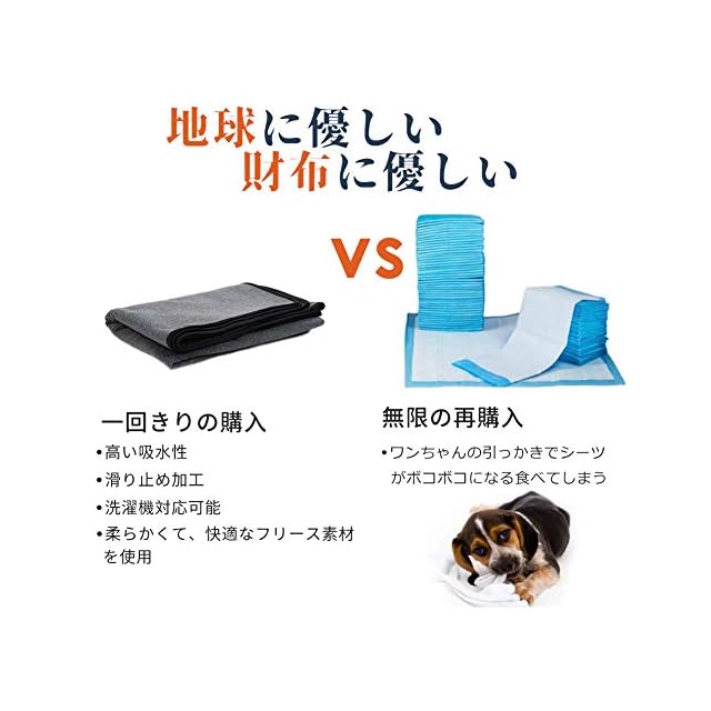 洗って繰り返し使える布製のペットシーツです。何度でも洗って使える経済性、優れた吸収・防水・速乾性能でおしっこの拡散を防ぎます