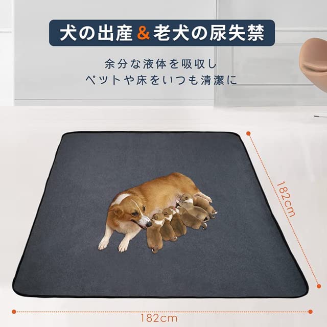 商品名:犬 猫用洗えるペットシーツ おしっこパッド ペット用 下敷き マット 速乾 滑り止め加工 介護シーツ 洗濯機で丸洗い 繰り返し利用可能(グレー182*182cm)