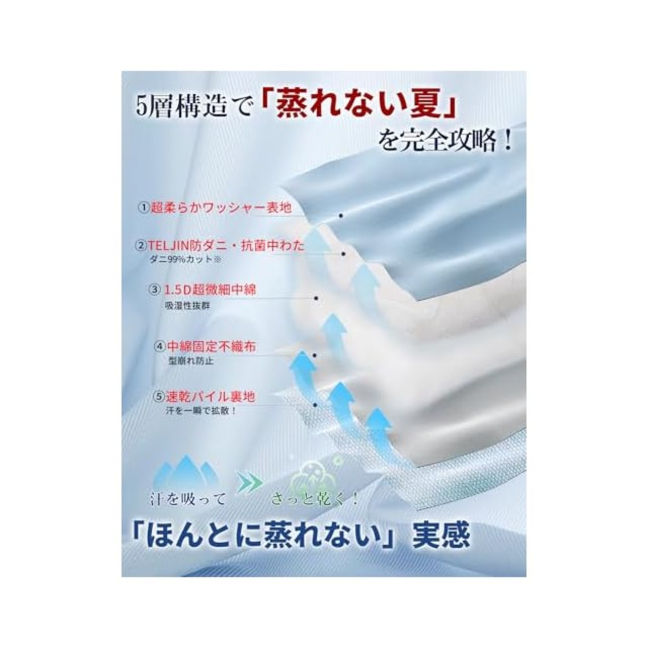 【TEIJINの衛生機能中綿を追加、プロの衛生対策】「抗菌」「防臭」「防ダニ」の効果が備えているため、湿気や寝汗などによる菌の増殖がしやすい夏でも安心・安全してご使用いただけます。