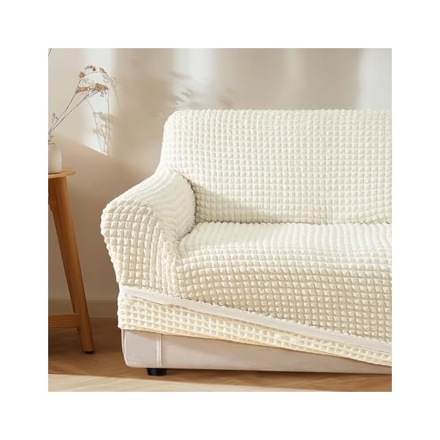 Topfinel ソファーカバー 3人掛け 肘付き クリーム 無地 北欧 滑り止め ストレッチ フィットタイプ 防塵 伸縮素材伸び良く 汚れ 洗える 柔らかい 四季適用 | Trend Design BASE店