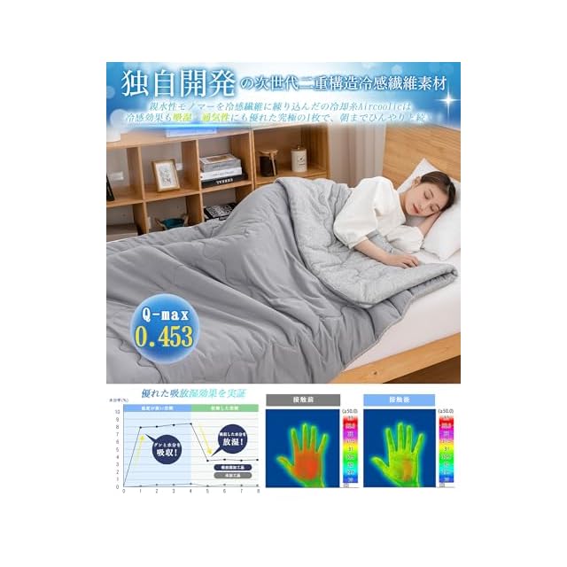 ❄【瞬ひんやり接触冷感、夏をより快適!】独自開発の次世代二重構造冷感繊維素材Aircoolicを採用し、冷感効果も吸湿・通気性にも優れた究極の1枚で、生地に触った瞬間ひんやりしますので、暑い夜の寝始めを快適にサポートします。冷房との併用でさらにひんやり!