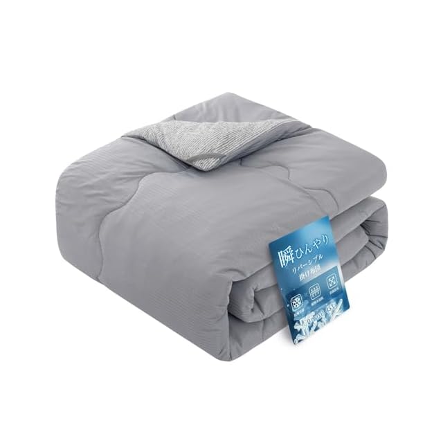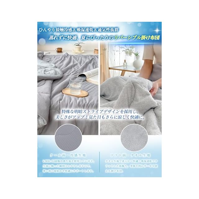 商品名:OIGAE 夏用掛け布団 シングル 掛け布団 【独自開発のAIRCOOLIC糸冷感生地】 接触冷感 冷感&タオル地【冷感&タオル地】 リバーシブル 夏布団 肌掛け布団 吸湿速乾 抗菌防臭 冷房対策 ふわふわ肌触り 丸洗いOK 一年中使える キルトケット かけ布団 140X190cm ダックグレー BSJ030