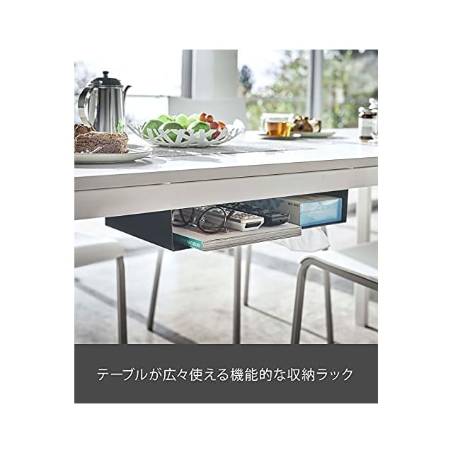 商品名:山崎実業(Yamazaki) テーブル下 収納ラック ブラック 約W44XD25XH7.2cm タワー ティッシュ リモコン 一括収納 5482