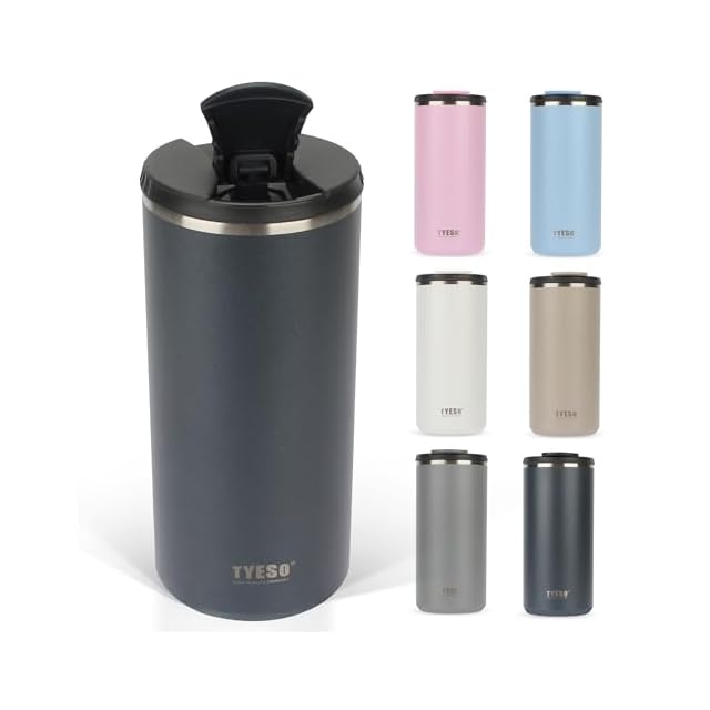 【食洗機対応・漏れ防止】TYESO タンブラー 蓋付き 真空断熱 大容量 ステンレス鋼 魔法瓶 水筒 コーヒー カップ 直飲み 持ち運ひ 蓋取り外して洗える タンブラー プレゼント 600ml ブラック | Trend Design BASE店