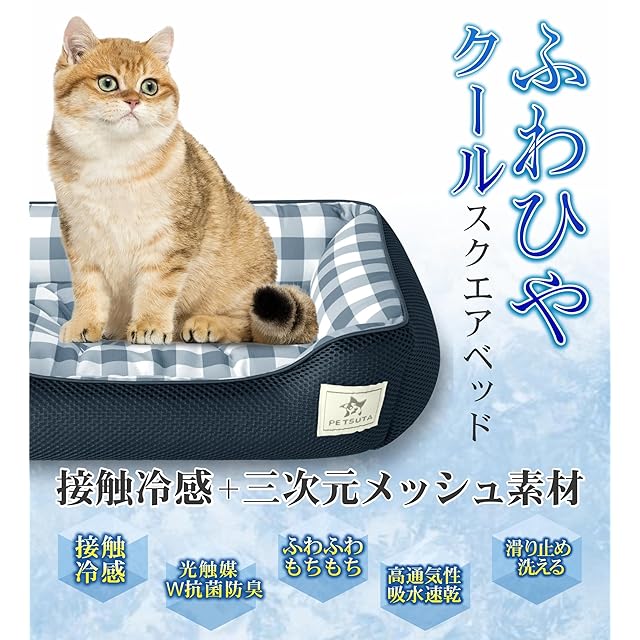 PETSUTA 犬 ベッド 夏【消臭+制菌】猫 ベッド 冷感 ペットベッド 犬 夏用ベッド ひんやり 暑さ対策 高通気性 猫用ベッド 犬用ベッド もちふわ ペットクッション 吸水速乾 洗える 滑り止め(ネイビー 40X31X13cm)