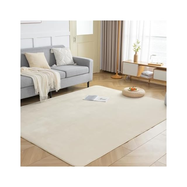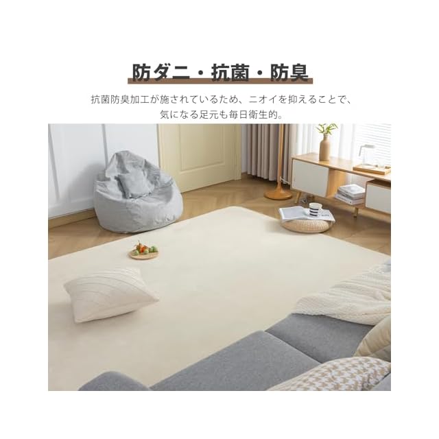 fuwawa ラグ カーペット 滑り止め付 洗える ラグマット 1.5畳 135×185cm 絨毯 オールシーズン快適に使用 フランネルラグ 抗菌 防臭 ホットカーペット対応 無地 アイボリー | Trend Design BASE店