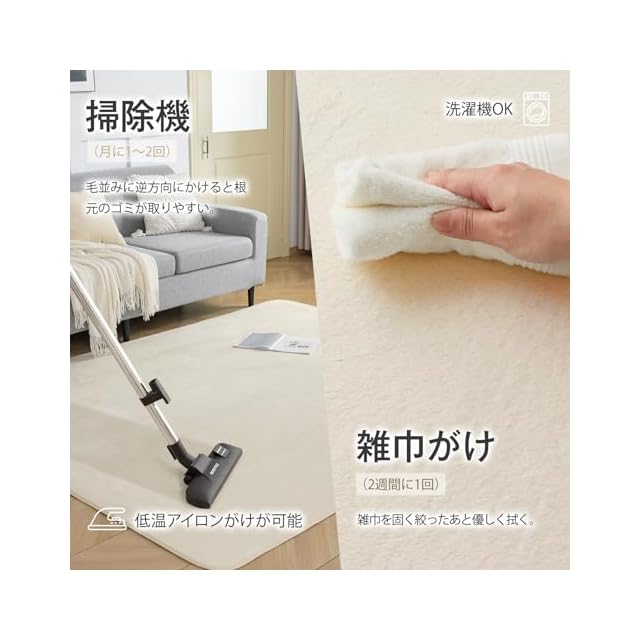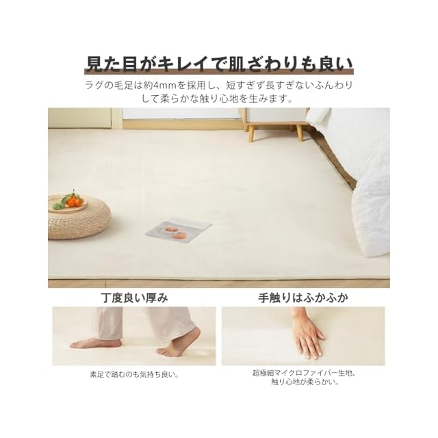 ✨【裸足でも気持ちいい肌触り】ラグの表面は密度が高い極細繊維を採用し、肌ざわりふわふわ。中材はウレタンフォーム使用し、ちょうどいいクッション性があります、裸足でも気持ち良いです。短毛タイプでゴミが絡みにくく掃除機もかけやすい(月に1~2回、毛並みに逆方向にかけると根元のゴミが取りやすい)、家庭での日常使いはもちろん、引っ越し祝いにも最適!