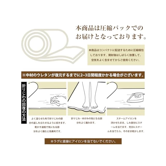 ✨【ラグ仕様】カラー:アイボリー 長方形ラグ 1.5畳 135x185cm 。起毛の高さ:約4mm、ウレタン厚:加工前約6.5mm、 絨毯表地:ポリエステル100% 中材:ウレタンフォーム 裏地:ポリエステル100%(不織布)【品質】商品輸送の際に折りたたんでお届けするため、開封時に折りジワ、歪み・寸法不足等の変形がありますが、ラグマットを広げて一週間ほどご使用になれば、ゆっくりと回復します。万が一商品に不具合がある場合、商品自体の問題がある場合は、弊社にご連絡いただければ迅速に対応いたします。弊社のラグにご満足いただけない場合、いかなる理由でもご返品いただけます。ご安心してお買い求め頂けます。